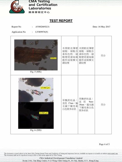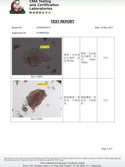 香港中華廠商會檢定中心的報告檢定山王沉香技術所產生的沉香含油量超過35%,可用於傳統中藥配方。產出還通過殘餘農藥測試,品質有保證。